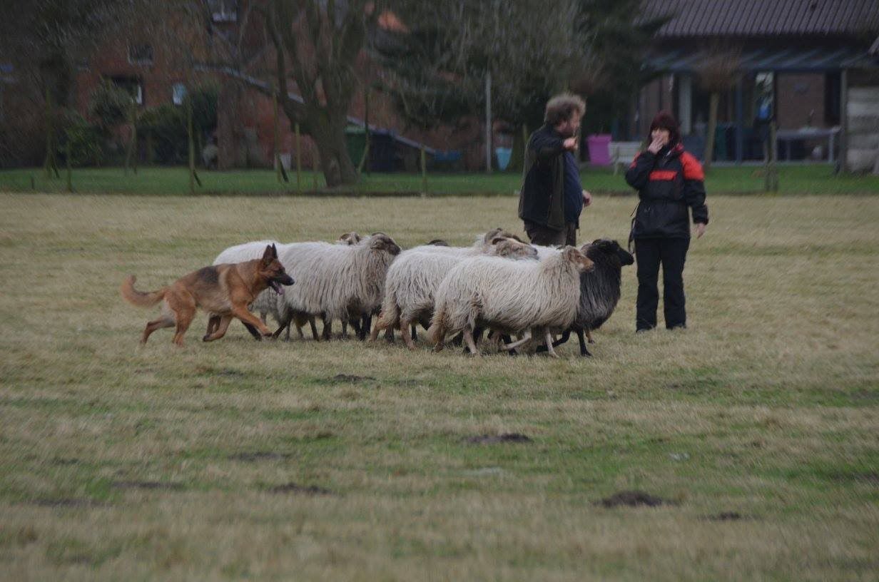 Cos Mouw, de vorige herder van Elspeet, en Cristine Mouw hebben jaren met een Mechelse Herder de kudde gehoed. Cristine heeft nu een Border Collie.